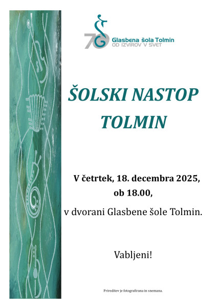 Četrtek, 18. decembra 2025, ob 18.00, v dvorani glasbene šole. Vabljeni!