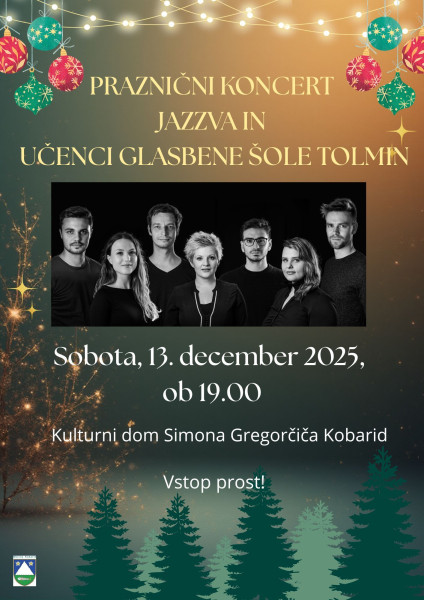 Vljudno vabljeni na praznični koncert Jazzve in učencev Glasbene šole Tolmin, 13. 12. 2025, ob 19.00 v Kulturnem domu Kobarid.